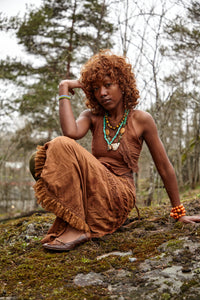 Our Pranayama Top is inspired by nomadic gypsy styles. This top is made from super soft fabric and features adjustable ties for a perfect fitting! The embroidery detailing adds a subtle touch of unique tribal expressions and the two back straps make a perfect body fit easy and comfortable! Perfect for a natural feel at festivals!